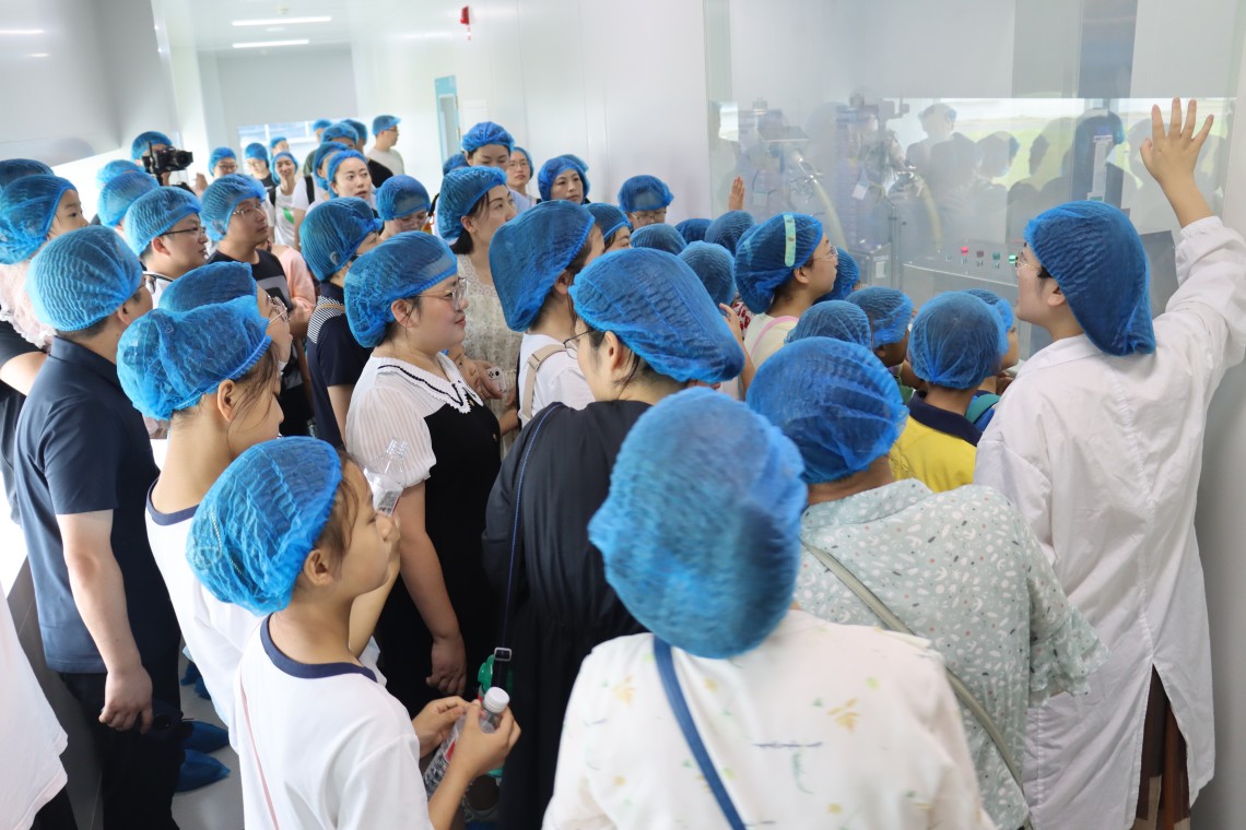 当天上午,50名优秀员工及其子女们一同探访了壹号娱乐医药连云港园区的生产车间、办公大楼以及企业展厅。在原料药车间的储液罐前,孩子们全神贯注地听着讲解,激起了满满的好奇心和求知欲;在制剂明亮整洁的生产车间里,小朋友们隔着护栏近距离地观看正在作业的机械臂,发出阵阵惊叹;在现代化的企业展厅,孩子们自豪于父母的壹号娱乐人身份,纷纷表示长大后也想成为一名壹号娱乐医药工作者……