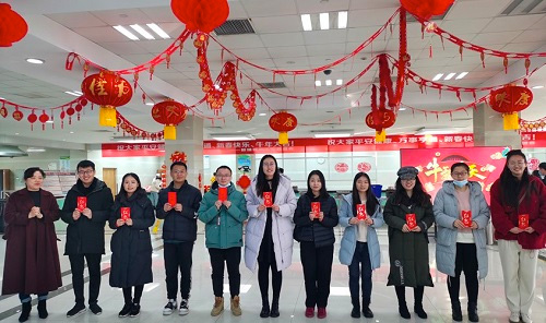 壹号娱乐医药副总经理蒋素梅携研究院院长卢韵、原料分公司负责人朱汉帅等领导齐到现场,感谢外地留连青年奉献的同时,还为大家送上了餐饮补贴红包以及新春的问候。