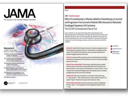 基于出色的数据,ESCORT-1st研究荣登2021年ASCO大会口头报告,同时被国际权威杂志、四大医学期刊之一的《美国医学会杂志》(JAMA)全文在线发表,成为全球首项也是唯一一项登上JAMA杂志的食管癌免疫治疗临床研究。2021新版《中国临床肿瘤学会(CSCO)食管癌诊疗指南》也将卡瑞利珠单抗联合紫杉醇和顺铂化疗列为一线治疗方案推荐(II级专家推荐,1A类证据),ESCORT-1st研究成果得到国内外学术界的广泛认可。