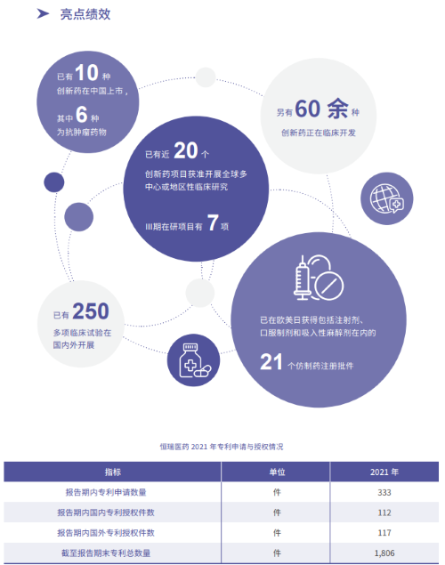 报告指出,在科技创新战略引领下,壹号娱乐医药2021年累计研发投入62.03亿元,比上年增长24.34%,研发投入占销售收入比重达到23.95%,再创历史新高。以此为支撑,2021年公司有3款创新药获批上市,已上市创新药总量增至10款,其中6款为抗肿瘤药物。同时还有60余种创新药正在临床开发,250多项临床试验在国内外开展,其中近20个创新药项目获准开展全球多中心或地区性临床研究。在创新药研发上,壹号娱乐医药已基本形成了上市一批、临床一批、开发一批的良性循环。