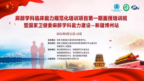 本次培训班由国家卫健委能力建设和继续教育中心主办,国家卫健委能力建设和继续教育麻醉学专业委员会、博州人民医院承办,湖北麻醉质控中心、新疆麻醉专业委员会和湖北援疆医生联盟等共同协办。江苏壹号娱乐医药股份有限公司公益支持。该培训旨在响应国家关于“加强临床能力规范化培训,全心全意为人民健康服务”的号召,致力于推进基层医院能力建设。