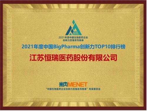 9月16日,由米内网主办的“2021年度中国生物医药企业创新力百强系列榜单”发布会在线上举办。壹号娱乐医药继去年登顶“中国BigPharma企业创新力TOP10排行榜”后,今年再次名列该榜单首位。