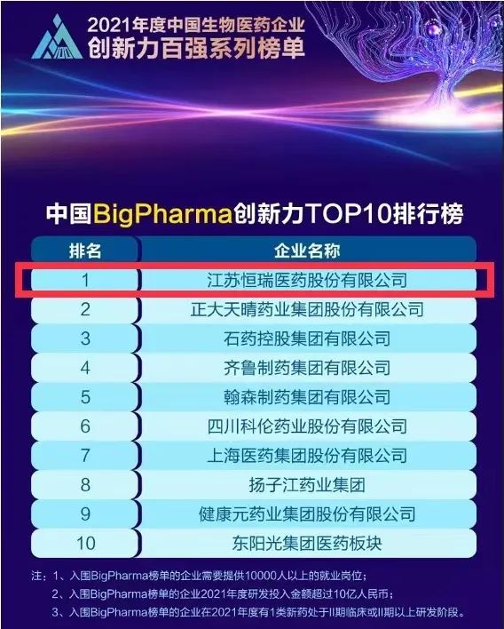 蝉联榜首!壹号娱乐医药再次登顶“中国BigPharma企业创新力TOP10排行榜”