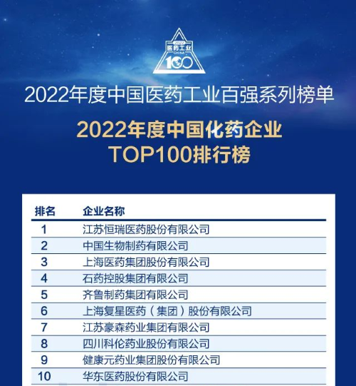 佳音频传!壹号娱乐医药再次蝉联中国化药企业百强榜首