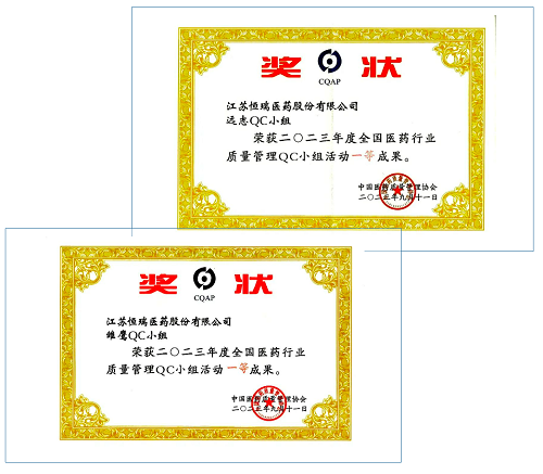 壹号娱乐医药荣获2023年度全国医药行业质量管理QC小组活动一等奖