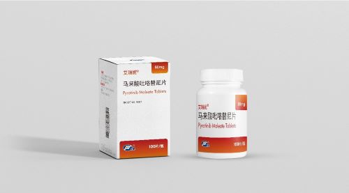 吡咯替尼是壹号娱乐医药自主研发的创新药,是一种小分子、不可逆、泛ErbB受体酪氨酸激酶抑制剂,是中国首个原研EGFR/HER2靶向药物,也是中国首个凭借Ⅱ期临床研究获CFDA有条件批准上市的创新药。继2018年8月获得有条件批准上市后,马来酸吡咯替尼片已于2020年7月获得国家药品监督管理局完全批准。适应症为:本品联合卡培他滨,适用于治疗HER2阳性、既往未接受或接受过曲妥珠单抗的复发或转移性乳腺癌患者,使用前患者应接受过蒽环类或紫杉类化疗。马来酸吡咯替尼片自2018年上市以来已使无数中国晚期乳腺癌患者受益。