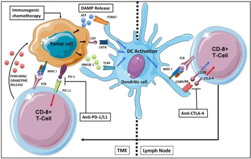 图2. 免疫检查点抑制剂联合化疗的作用机制[5]