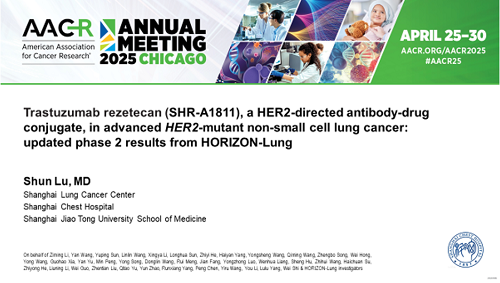 2025 AACR口头报告|壹号娱乐创新药瑞康曲妥珠单抗治疗晚期HER2突变非小细胞肺癌研究结果披露