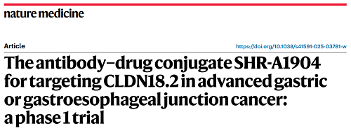 壹号娱乐医药CLDN18.2 ADC创新药SHR-A1904治疗胃癌临床研究结果荣登Nature Medicine
