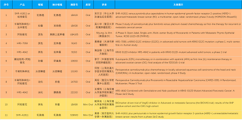 15款创新药包括10款已上市产品:注射用瑞康曲妥珠单抗(艾维达®,研发代号:SHR-A1811)、注射用卡瑞利珠单抗(艾瑞卡®)、苹果酸法米替尼胶囊(艾比特®)、甲磺酸阿帕替尼片(艾坦®)、马来酸吡咯替尼片(艾瑞妮®)、阿得贝利单抗注射液(艾瑞利®)、羟乙磺酸达尔西利片(艾瑞康®)、氟唑帕利胶囊(艾瑞颐®)、瑞维鲁胺片(艾瑞恩®)、海曲泊帕乙醇胺片(恒曲®),以及5款未上市产品,包括KRASG12C抑制剂HRS-7058、KRASG12D抑制剂HRS-4642、选择性的AR-PROTAC(雄激素受体-蛋白降解靶向嵌合体)小分子HRS-5041、抗PD-L1/TGF-βRII双抗瑞拉芙普-α注射液(SHR-1701)、Trop-2 ADC SHR-A1921。2类新药盐酸伊立替康脂质体注射液(II)(越优力®)及国内首仿药昂丹司琼口溶膜(艾其速®)各有1项研究入选。本文特对研究成果做了梳理,带领各位读者领略壹号娱乐医药创新之光。