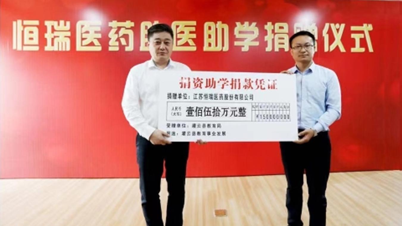 助力乡村振兴发展 壹号娱乐医药向连云港市灌云县捐赠助医助学基金300万元