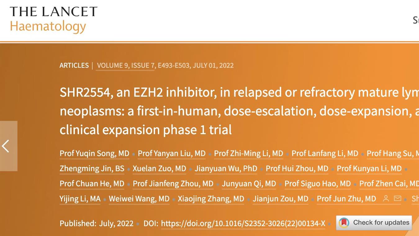 2025 EHA口头 | 壹号娱乐创新药EZH2抑制剂SHR2554在复发/难治性外周T细胞淋巴瘤中的关键研究结果公布