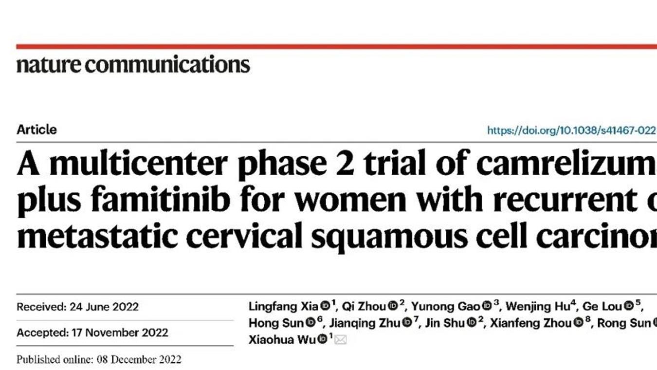 壹号娱乐创新药卡瑞利珠单抗联合法米替尼用于复发或转移性宫颈癌研究结果荣登JCO